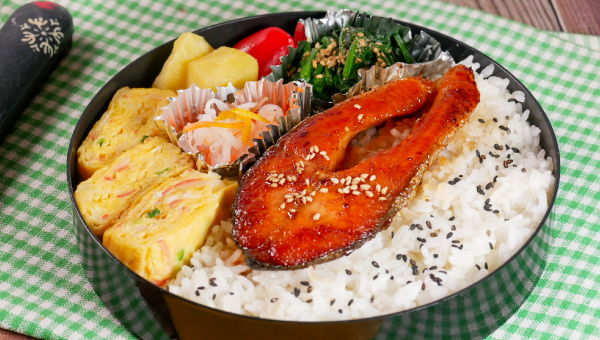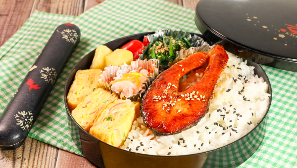 冷めてもおいしい甘辛照り焼きで、ごはんがどんどんすすむ味わい。境港産の塩銀鮭を使っているから、身はふっくら、旨みもしっかり。ご家庭のフライパンで手軽に作れて、忙しい朝のお弁当作りにも大活躍。ごまをぱらりとふれば、見た目も華やかな鮭の照り焼き弁当に。