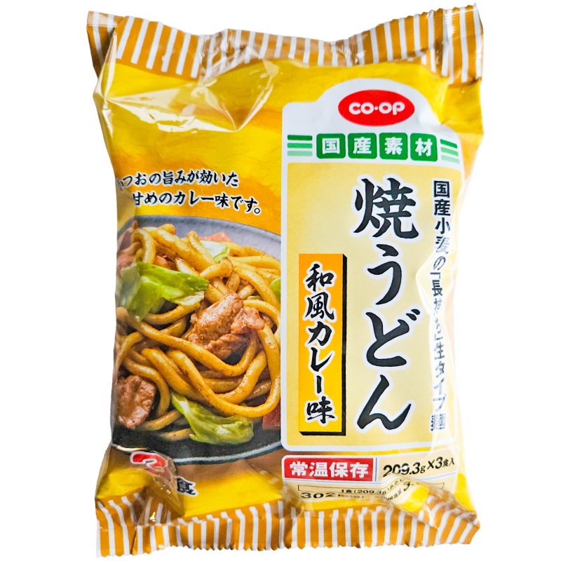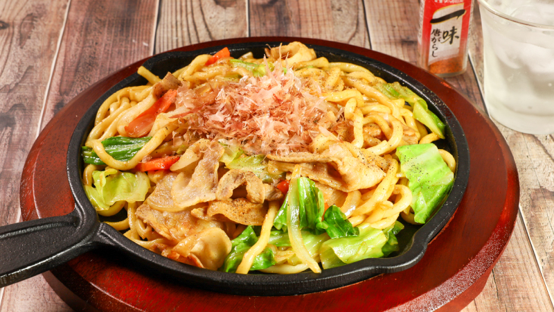 国産小麦を使った「長持ち」生タイプの平麺で作る、和風カレー味の焼うどん。もちっとした麺にカレーのコクがよく絡み、豚肉やキャベツ、にんじんなどお好みの具をたっぷり加えれば、平日の家族ごはんにも頼もしい一皿に。仕上げに鰹節をふわりとのせて、香りと旨みをプラス。食べごたえがありながら、どこかほっとする味わいです。