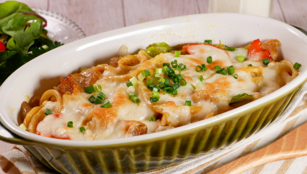 大人も満足の、ひと工夫アレンジ。カレーうどんにチーズをのせて、オーブンでこんがり焼き上げました。焼き色のついたチーズの香ばしさと、カレーのコクが重なり、食欲をぐっと引き立てます。いつもの一杯が、ちょっと特別なごちそうに。