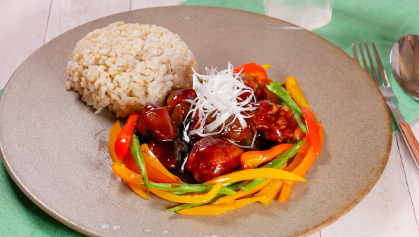 3種類の酢をブレンドした、コクのある酸味が楽しめる黒酢酢豚。国産豚肉と玉ねぎを使用し、濃旨だれがごはんに絡んで、忙しい日にも心強い一杯です。炒めたパプリカを合わせれば、彩りもボリュームもアップ。揚げ焼きしたなすには黒酢だれがじゅわっと染み込み、相性抜群のおいしさに。黒酢の深いコクと程よい酸味が、疲れた身体にもスッとしみわたります。年末年始に作り置きしておけば、“助かり丼”として大活躍します。✨