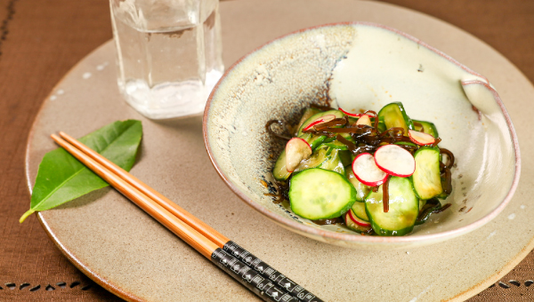 火を使わず、さっと作れる手軽な一品。しそ昆布の旨みときゅうりのシャキッとした食感、ラディッシュのほどよい辛みが心地よく重なります。さっぱりとした味わいで、晩ごはんの副菜にはもちろん、軽く一杯楽しみたいときにもおすすめ。あと一品欲しいときに、気負わず添えられる和え物です。