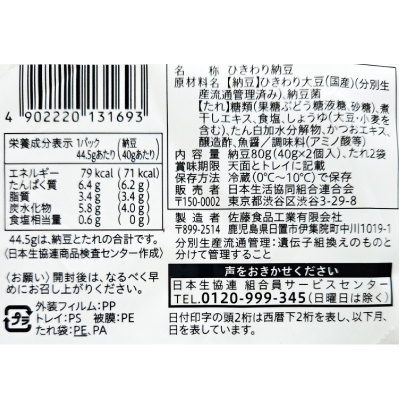 CO・OP 国産大豆ひきわり納豆 40g×2個入