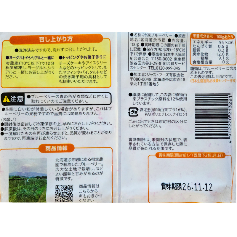 ①果実に白い粉が付着している場合がありますが、ブルーベリーの果粉によるもので、品質には問題ありません。