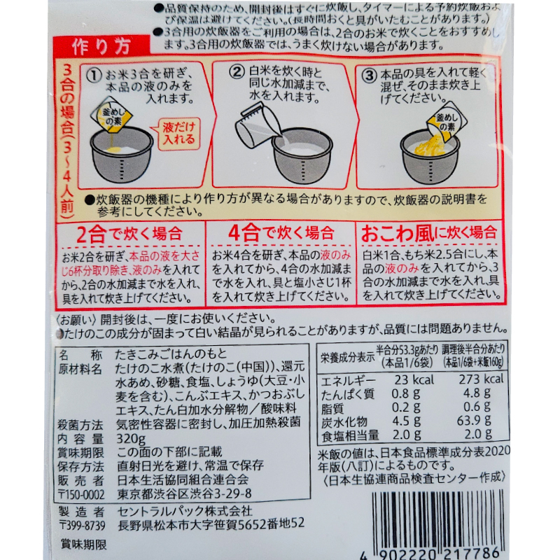 ※2合・4合で炊く場合や、おこわ風の炊き方は裏面に記載しています。