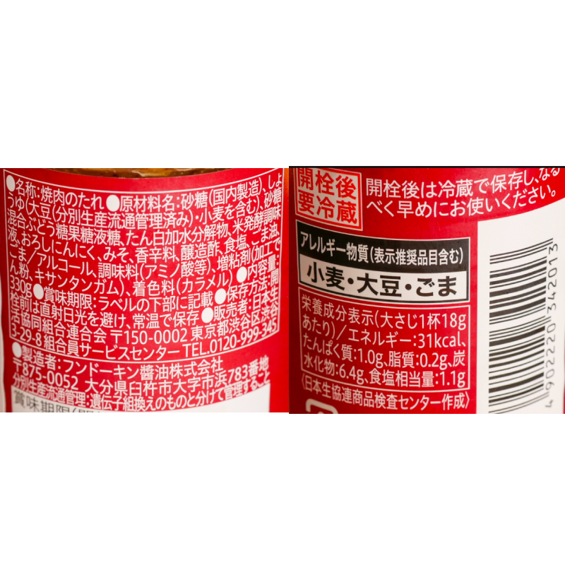 CO・OP 焼肉のたれ九州の味 330g 2026.03.07 イベント 夕食 家飲み 料理 昼食 間食 閲覧数:5 JAN:4902220342013保存方法:開栓前は直射日光を避け、常温内容量:330g 調理のポイント ・開栓後は冷蔵で保存し、なるべく早めにお使いください。